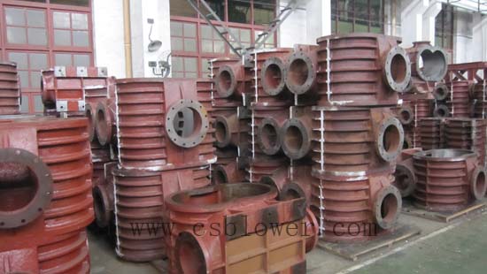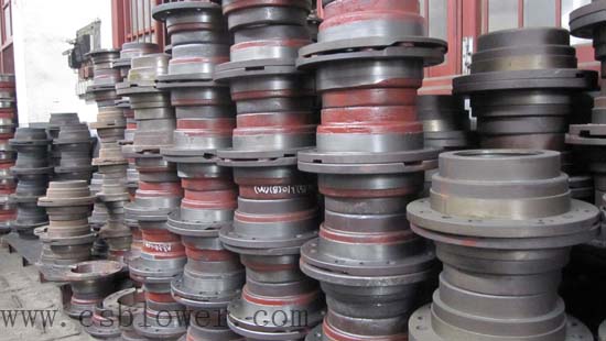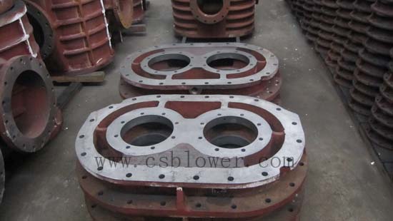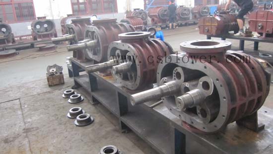 羅茨風(fēng)機(jī)機(jī)殼內(nèi)部裝有一對(duì)轉(zhuǎn)子部,轉(zhuǎn)子部是由葉輪和軸經(jīng)熱